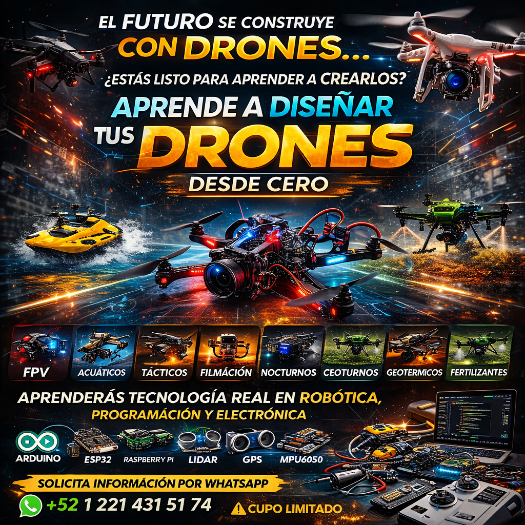 Objetivo: Enseñar fundamentos de electrónica, controladores y sensores para preparar el primer dron funcional.